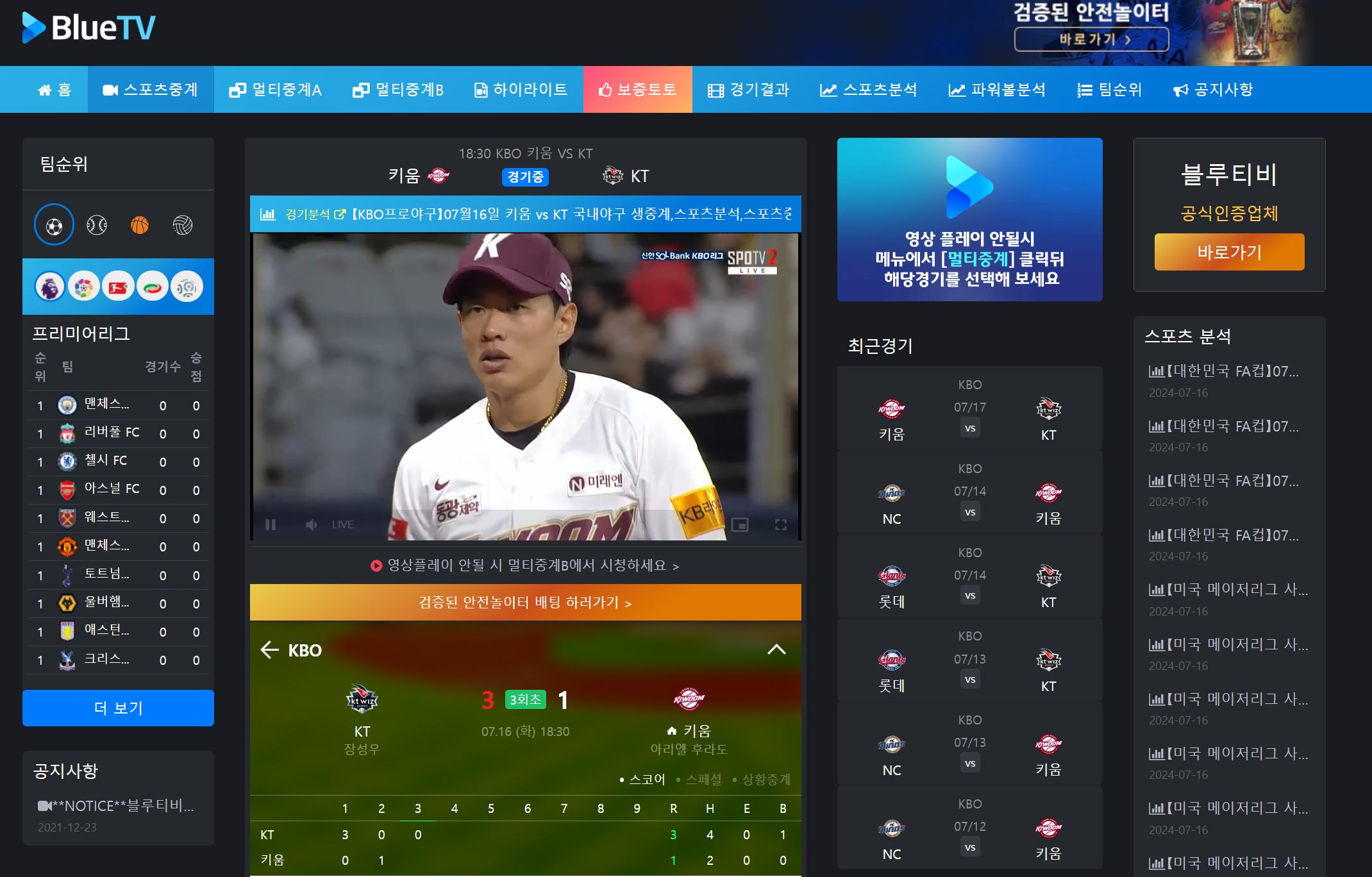 스포츠 무료중계 사이트 추천 2 - 블루티비