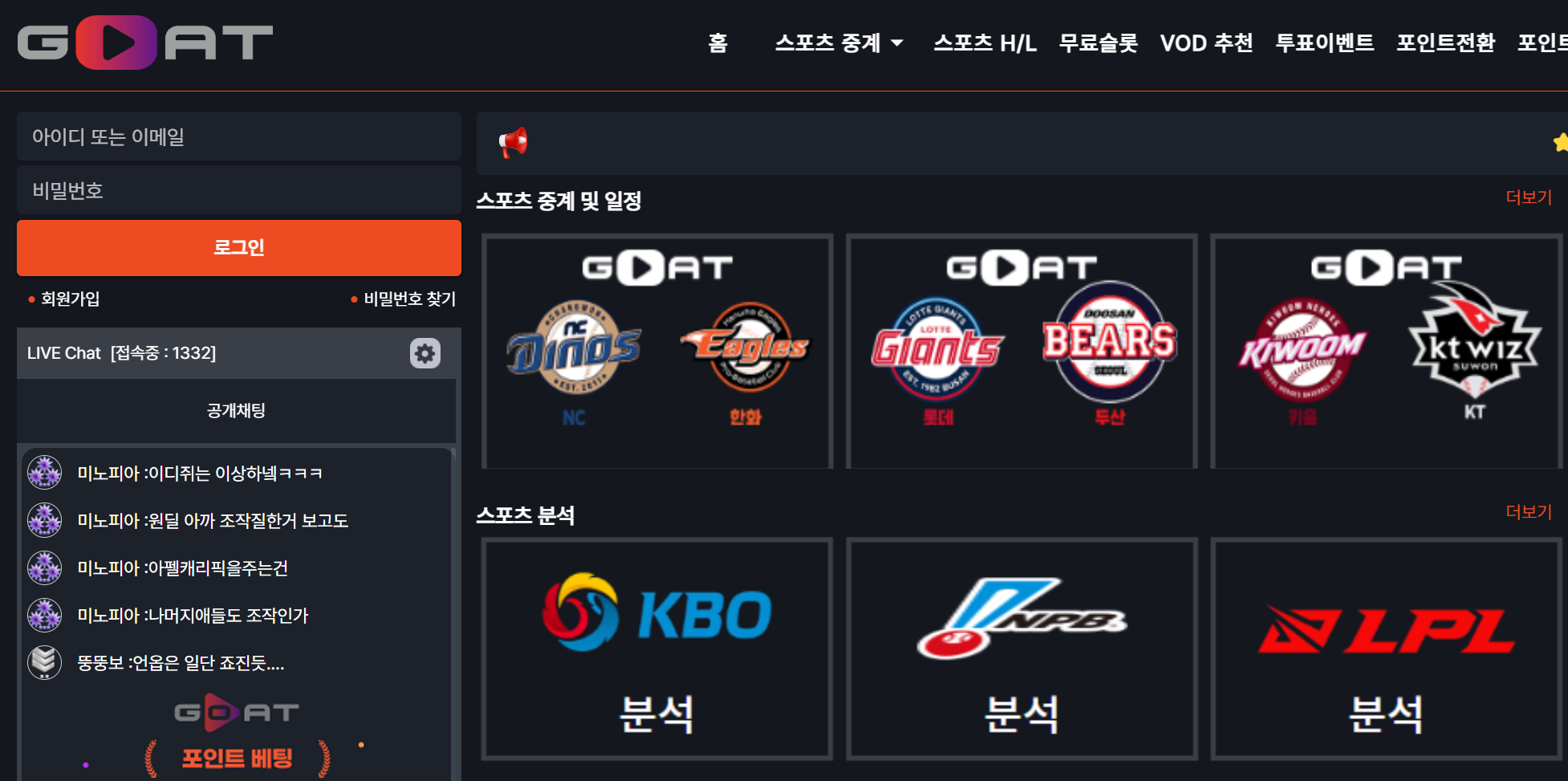 스포츠 무료중계 사이트 추천 3 - 고트티비