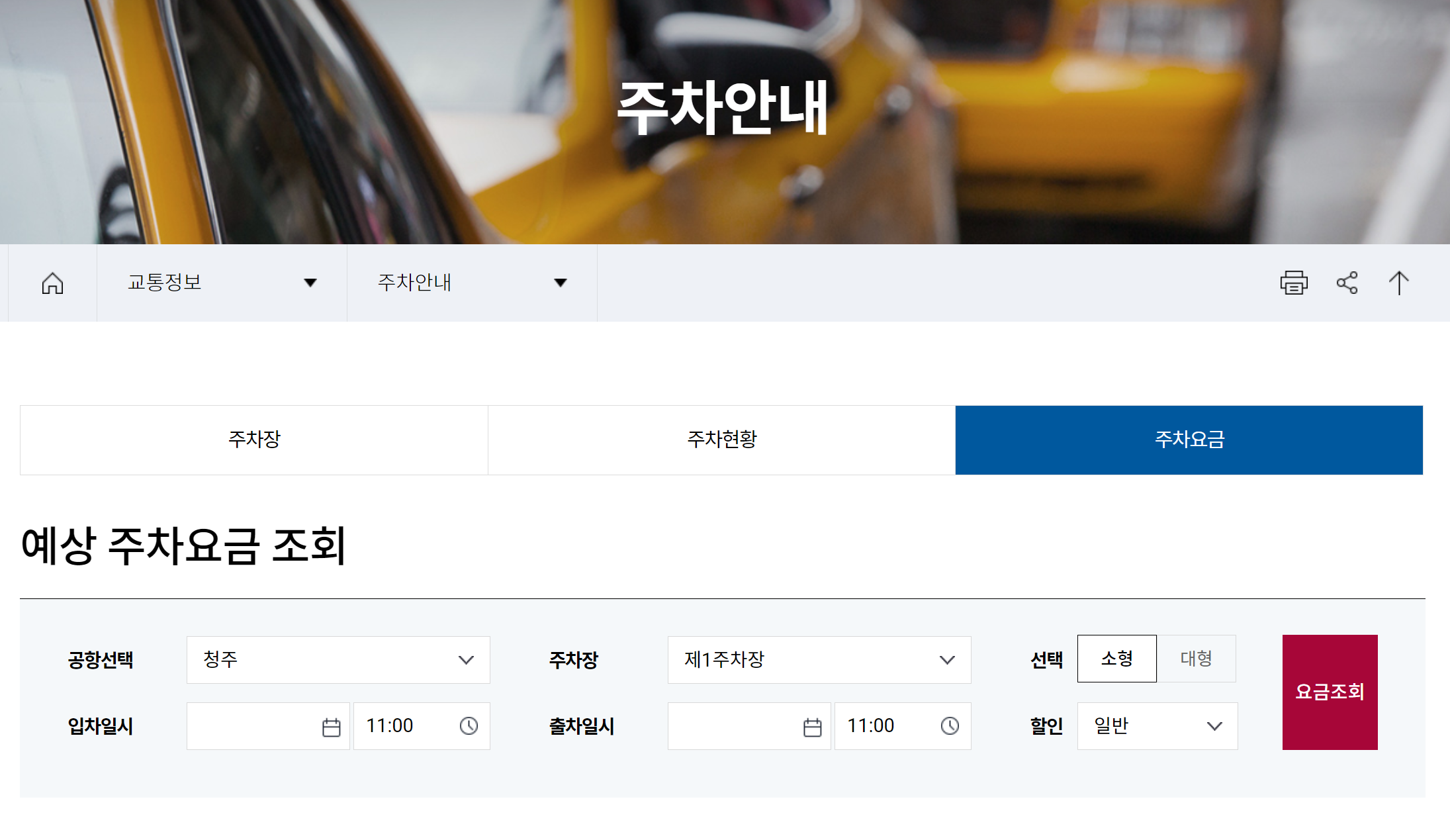 청주공항에 진입하기 전, 아래 링크를 통해 실시간 주차정보를 확인하시고,