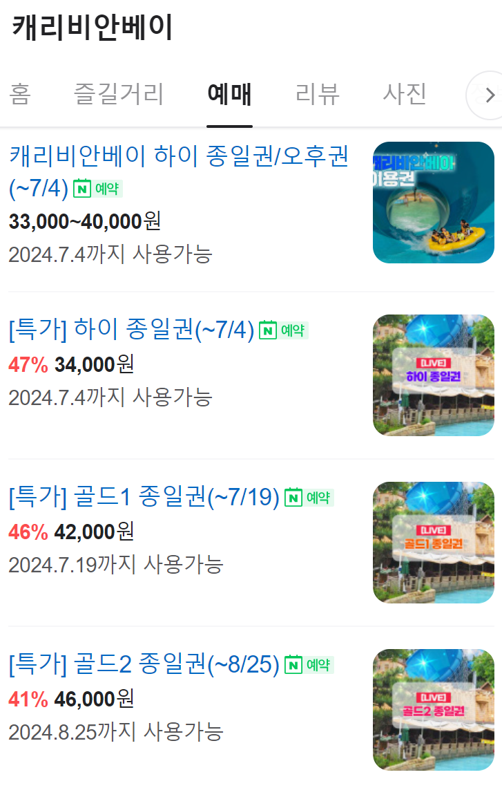네이버 캐리비안베이 입장권 최저가 구매하기
